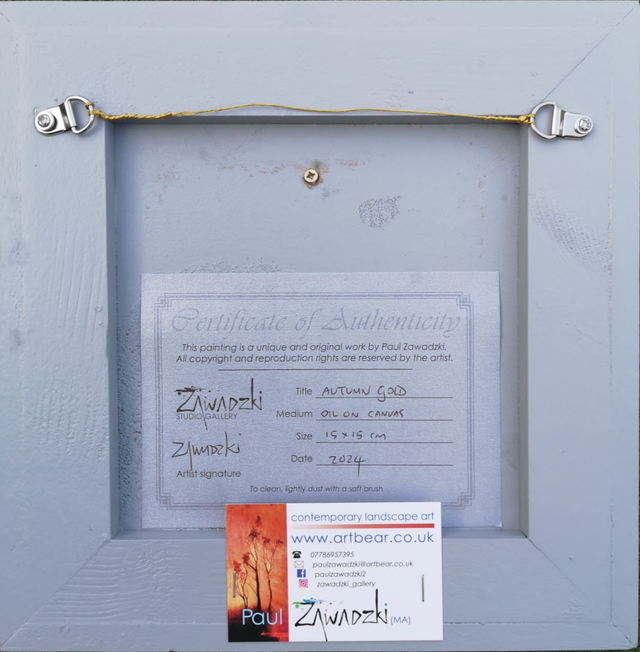 Introducing our unique and original autumn artwork - a stunning oil painting that captures the golden and orange hues of fall. Hand-crafted by the talented Zawadzki in our studio, this one-of-a-kind piece is framed and ready to hang on your wall. The canvas is of the highest quality, ensuring longevity and retaining the vibrancy of its colours. This artwork is perfect for adding warmth and beauty to any living space, and its size makes it a great focal point for any room. Don't miss out on the chance to own this exquisite piece of artwork from our gallery.